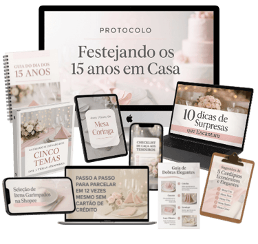 Comece hoje mesmo a usar o PROTOCOLO FESTEJANDO OS 15 ANOS EM CASA e garanta uma lembrança inesquecível que só uma mãe pode dar à filha.