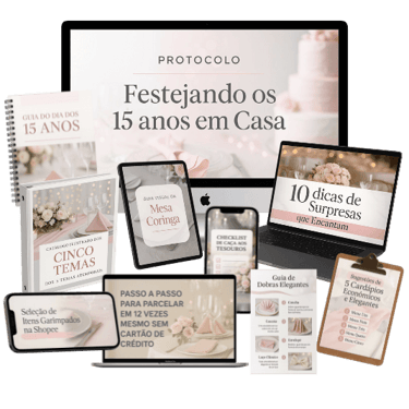 Você terá em mãos um Checklist para descobrir tudo o que estava escondidos dentro da sua casa e transformar o dia dos 15 anos da sua filha em um momento ainda mais personalizado e inesquecível.