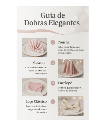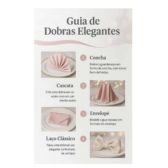Guia prático do passo a passo simples para transformar até guardanapos de papel em detalhes sofisticados.